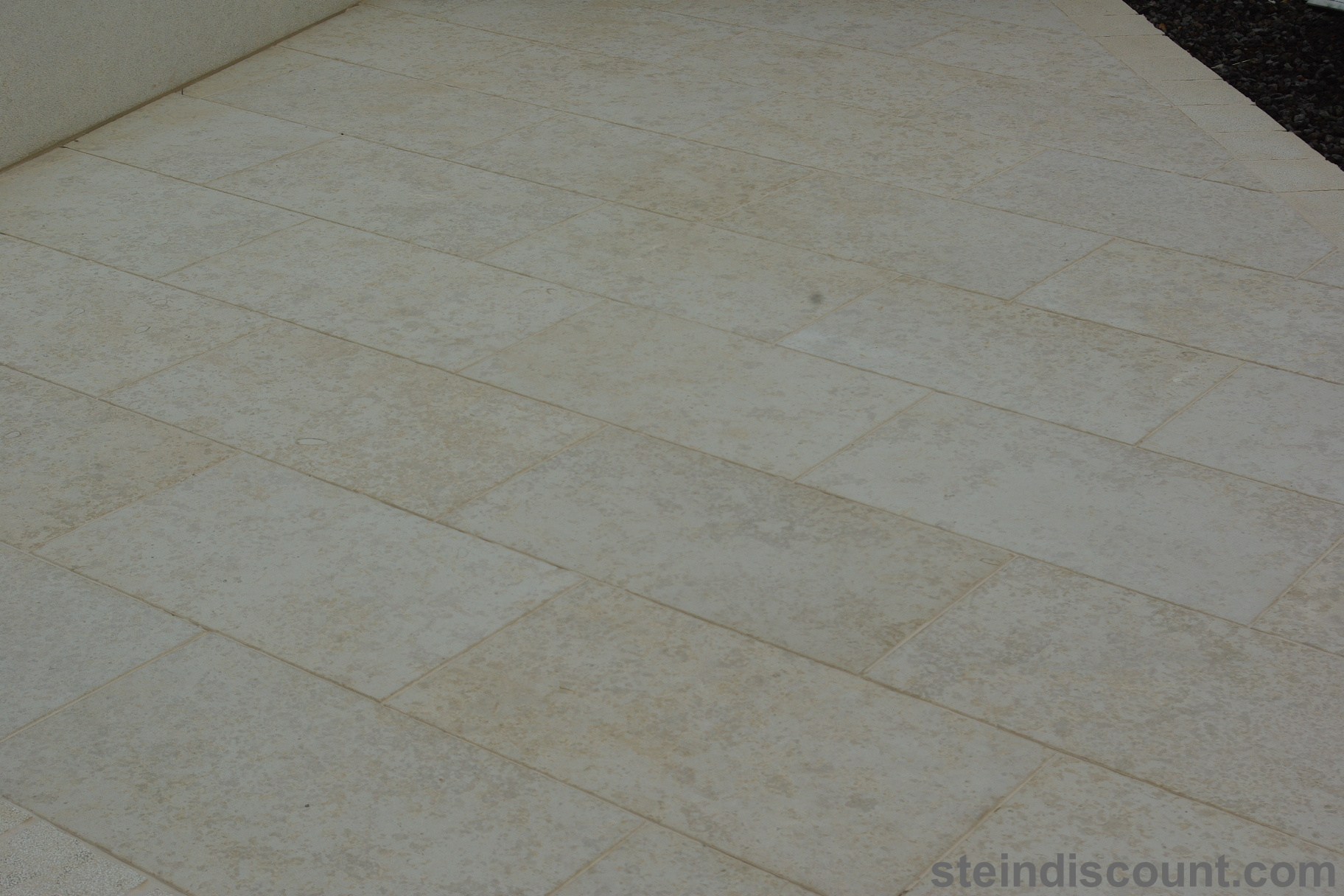 Ein optisch sehr warmer, ansprechender, mediteraner Stein der trotz größter Hitze kühl bleibt und sich beim Barfuß begehen gut anfühlt.